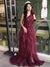 Burgundy Floral Tulle One Shoulder Long Gown