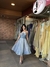 Powder Blue Off Shoulder 3d Embroidery Spliced Double Layer Mesh Bridesmaid Dress