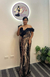 Plus Size Black Gold Mesh Sleeves Sequins Glittery Mermaid Long Gown