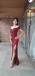 Maroon Burgundy One Shoulder Slit Sequins Glittery Long Pageant Gown