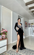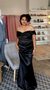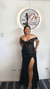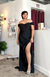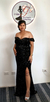 Black Sequins Glittery OffShoulder Slit Long Gown