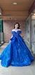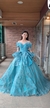 Teal Blue Off Shoulder Tassel Beads Ball Gown