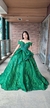Emerald Green Off Shoulder Geometric Pattern Ball Gown