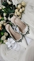 White Pearl Bow Ankle Strap Bridal Shoes Heels