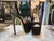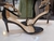 Black Stiletto Heels with Ankle Strap, Red Outsole