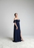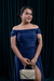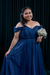 Navy Blue Off Shoulder Cross Wrap Bridesmaid Long Gown